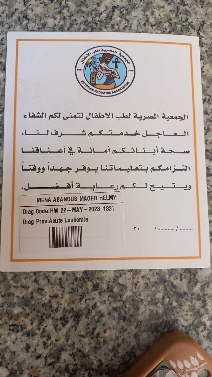 وعن تفاصيل حالة ابنه الصحية، قال أبانوب والد مينا: ابني عنده سرطان في الدم والغدد اللمفاوية، بقالي شهرين بحاول ألاقي مستشفى تسقبل ابني، فروحت معهد أورام أسيوط، بس مكنش فيه علاج كيماوي لابني.
