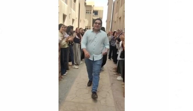 ردًا للجميل.. طالبات بتربية حلوان ينظمن ممرًا شرفيًا لـ أستاذ جامعي