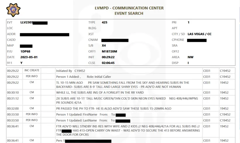 أفادت قناة 8 News Now التليفزيونية المحلية، أن كاميرات من قسم شرطة في لاس فيجاس التقطت جسمًا غامضًا مشتبهًا يحلق في السماء خلال فترة الليل.