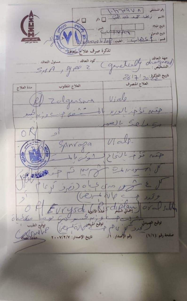 استغاث والد الطفل زين الذي يبلغ من العمر عامين ونصف، لعلاج ابنه من مرض ضمور العضلات الشوكي من النوع الثاني، والذي يعيق ابنه من الحركة وممارسة حياته الطبيعية كأي طفل عادي.