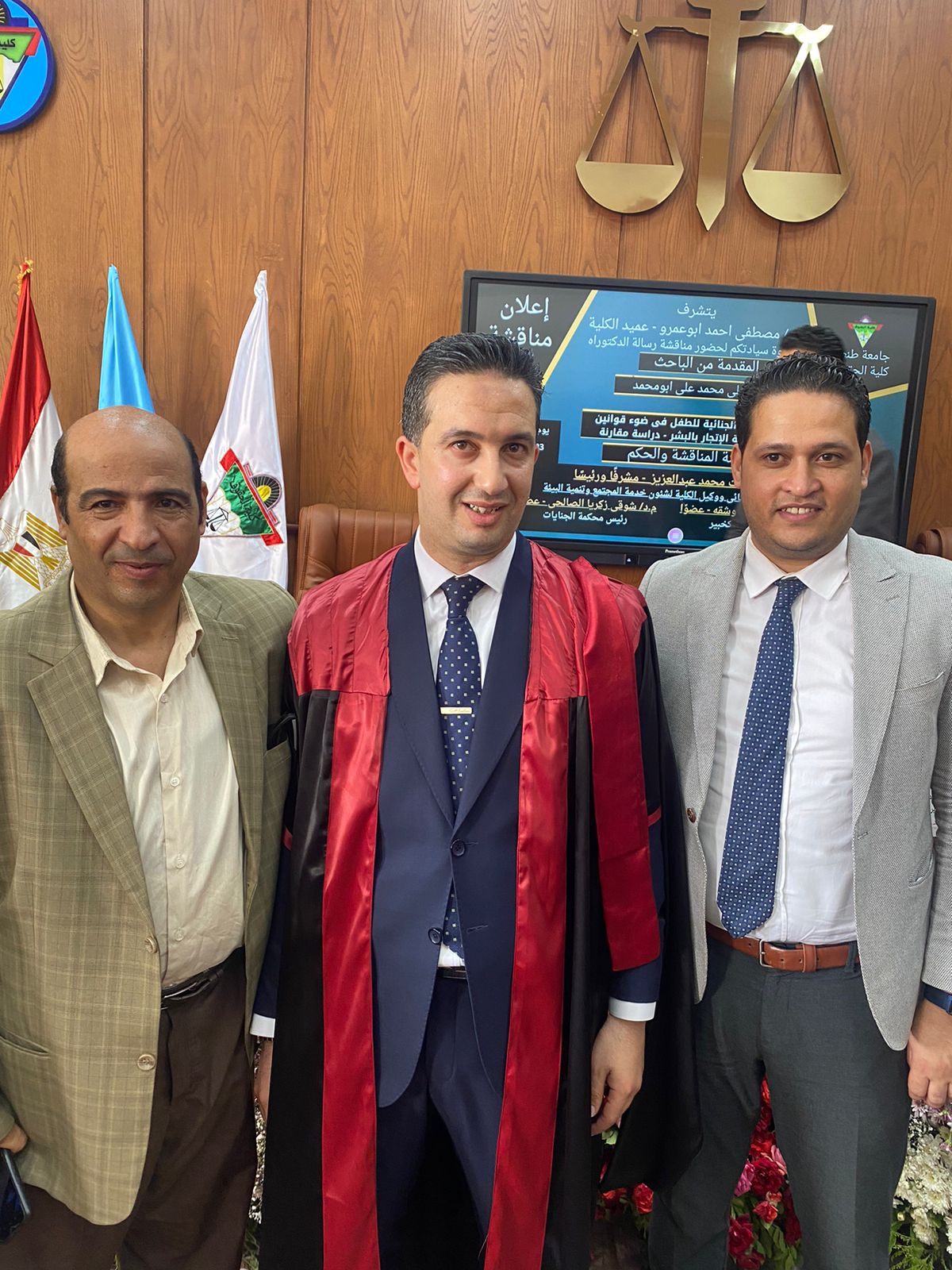 ناقش المستشار بهاء علي أبو محمد، رئيس محكمة الجنح المستأنفة بمحكمة كفر الشيخ الابتدائية رسالة الدكتوراة تحت عنوان الحماية الجنائية للطفل في ضوء قوانين مكافحة الاتجار بالبشر.. دراسة مقارنة، وذلك بكلية الحقوق جامعة طنطا، وحصل الباحث على درجة الدكتوراة في القانون، بتقدير جيد جدًا مع مرتبة الشرف.