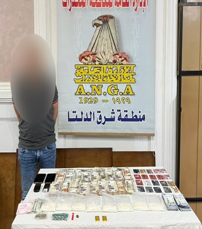وفي مديرية أمن الدقهلية تم ضبط أحد الأشخاص له معلومات جنائية، حال تواجده بمسكنه بدائرة مركز شرطة نبروة، وبحوزته كمية لمخدر الهيروين وكمية لمخدر الحشيش و8000 قرص مخدر لعقار الكبتاجون و13 قرص مخدر لعقاري أوكسي، الترامادول ومبالغ مالية عملات أجنبية ومحلية وسيارة و4 هواتف محمولة و2 قطعة سبيكة ذهبية.