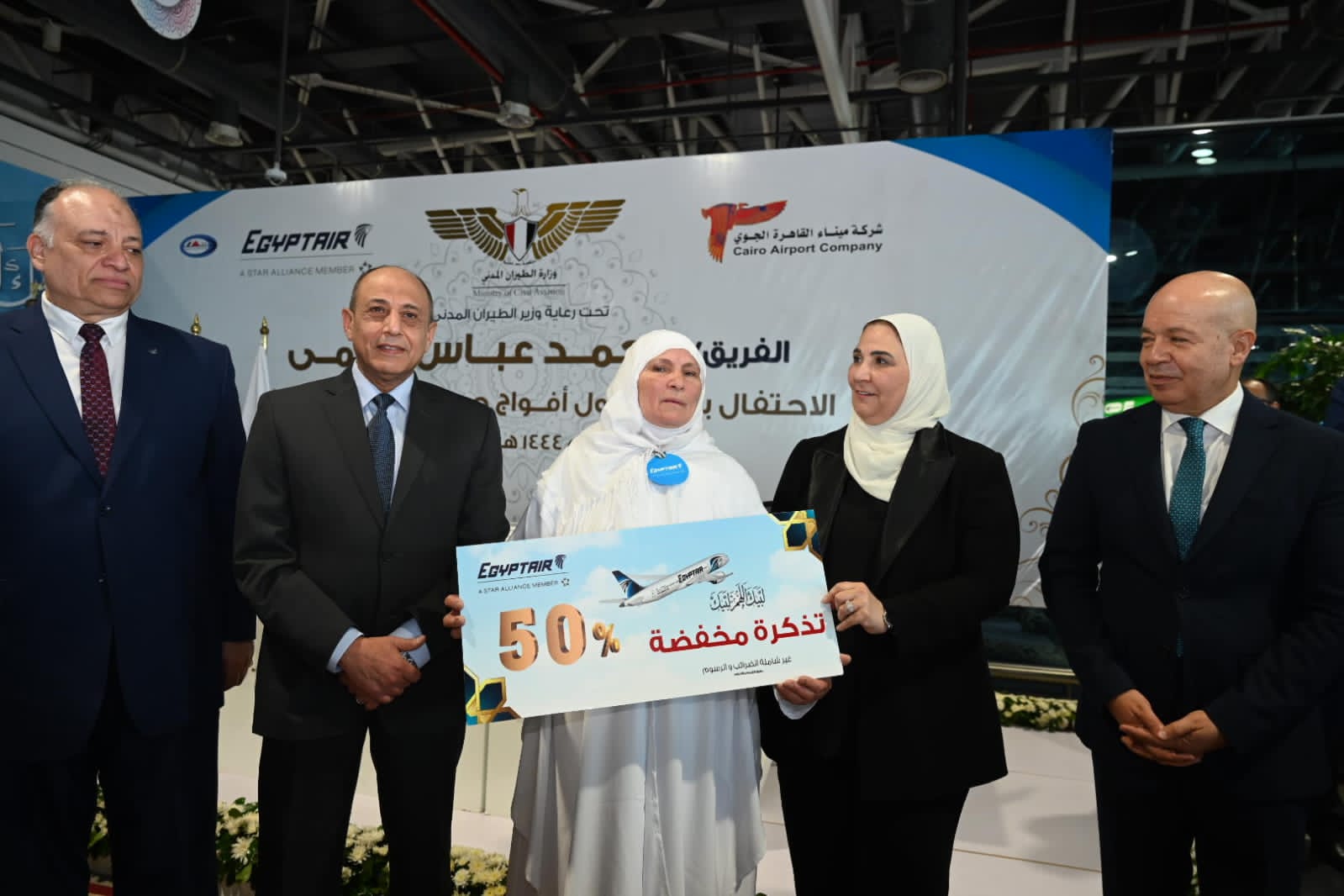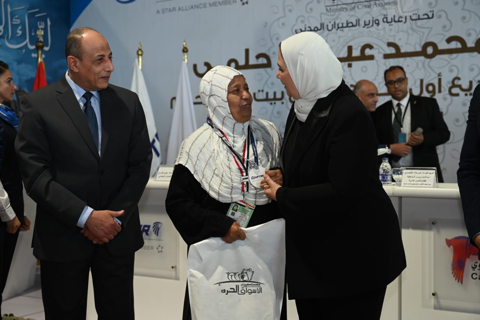 خلال توديع الفوج الأول.. وزيرة التضامن تعلن 5 جوائز للحجاج بقيمة 10 آلاف جنيه