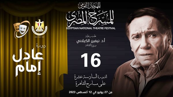 يُطلق المهرجان القومي للمسرح المصري برئاسة الفنان محمد رياض دورته السادسة عشرة باسم الفنان الكبير عادل إمام، وذلك تكريما لما قدمه خلال مسيرته الفنية من أعمال مسرحية متنوعة ومتميزة، وتصدرت صورة “الزعيم” البوستر الرسمي للدورة الجديدة التي ستنطلق خلال الفترة من 27 يوليو، وحتي 12 أغسطس.