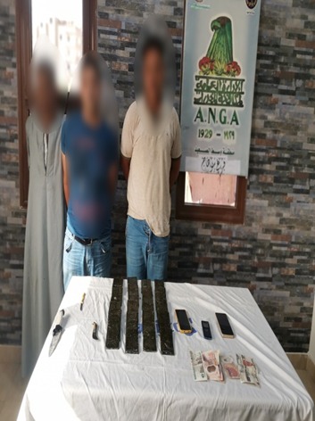 تمكنت من ضبط شخصين، وبحوزتهما 2000 قرص مخدر لعقار "التامول"- كمية من مخدر الحشيش - مبلغ مالي - هاتفي محمول.