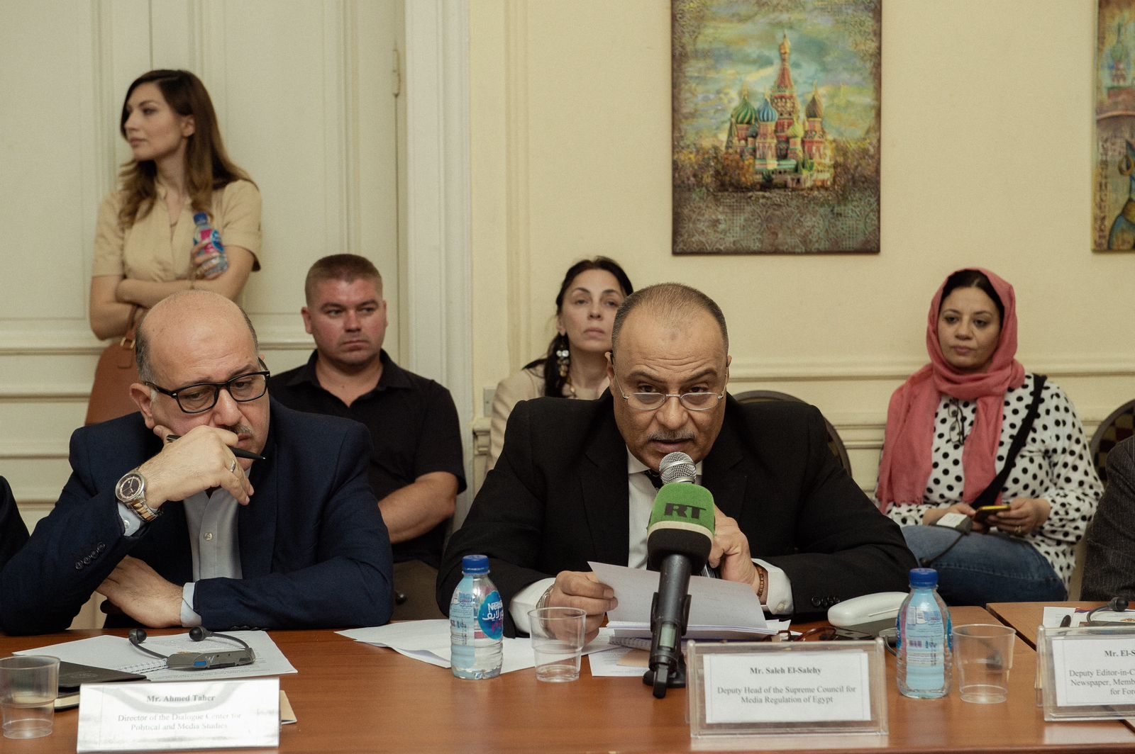 وحضر المنتدى السفير الروسي في مصر، جيورجي بوريسينكو وصحفيون من وسائل الإعلام الرائدة في البلدين، وكان من بين ضيوف الشرف في المنتدى المتحدث الرسمي باسم الوزارة الخارجية لجمهورية مصر العربية السفير أحمد أبو زيد، ونائب رئيس المجلس الأعلى لتنظيم الإعلام المصري صالح الصالحي، والمدير العام لاتحاد وكالات الأنباء في الدول الأعضاء في منظمة التعاون الإسلامي محمد اليامي ومدير المجلس المصري للشؤون الخارجية الدكتور عزت سعد.