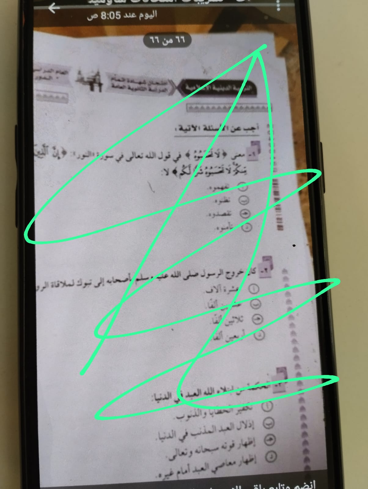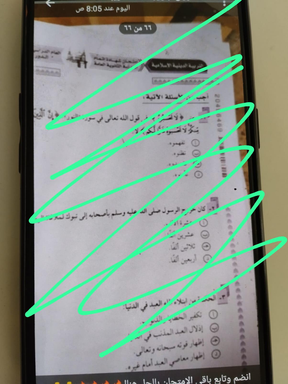نشر أدمن شاومينج للغش الإلكتروني عددًا من الصور، زعم أنها خاصة بامتحان التربية الدينة “الدين”، الخاص بطلاب الثانوية العامة 2023، والتي يعقد الآن داخل اللجان.