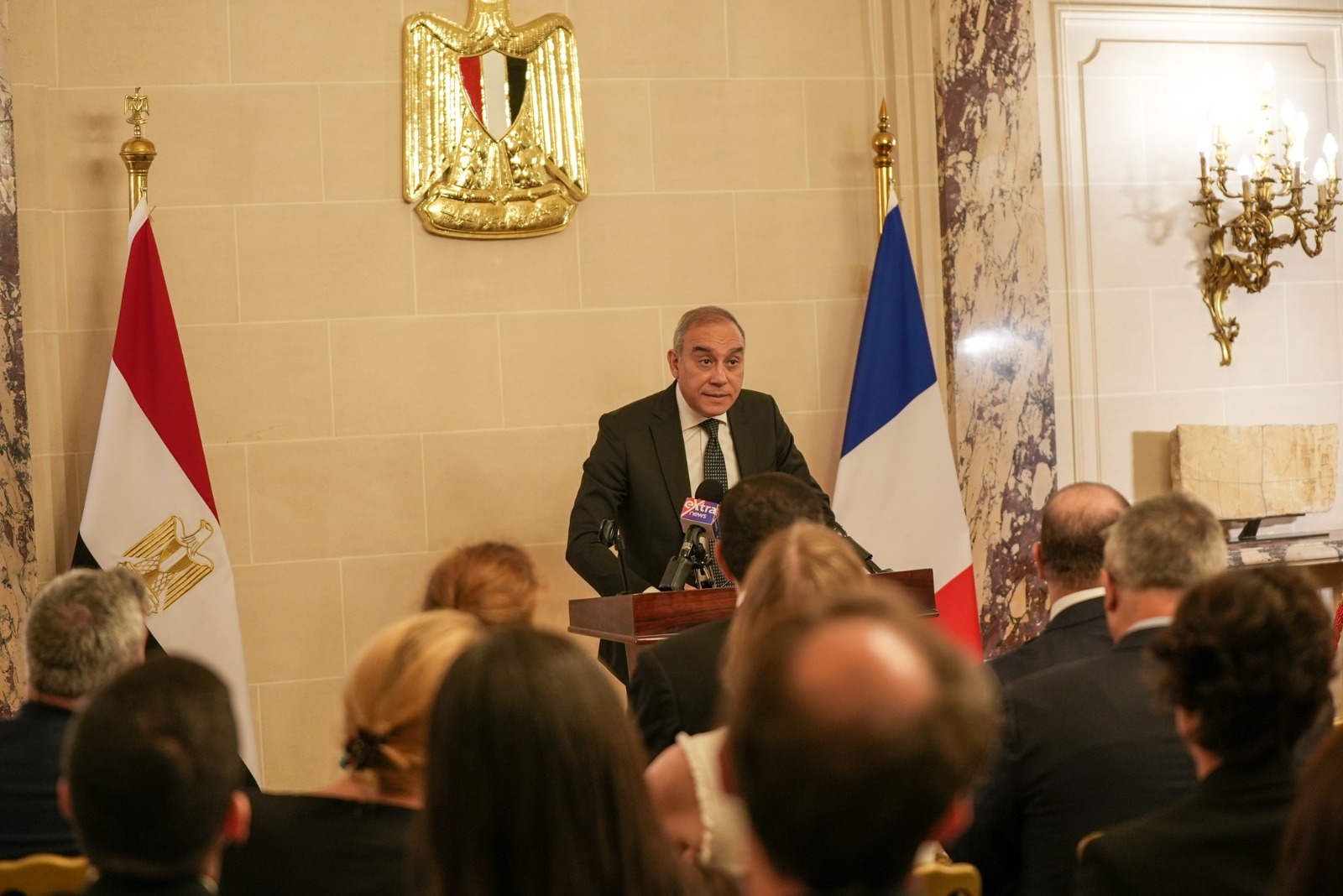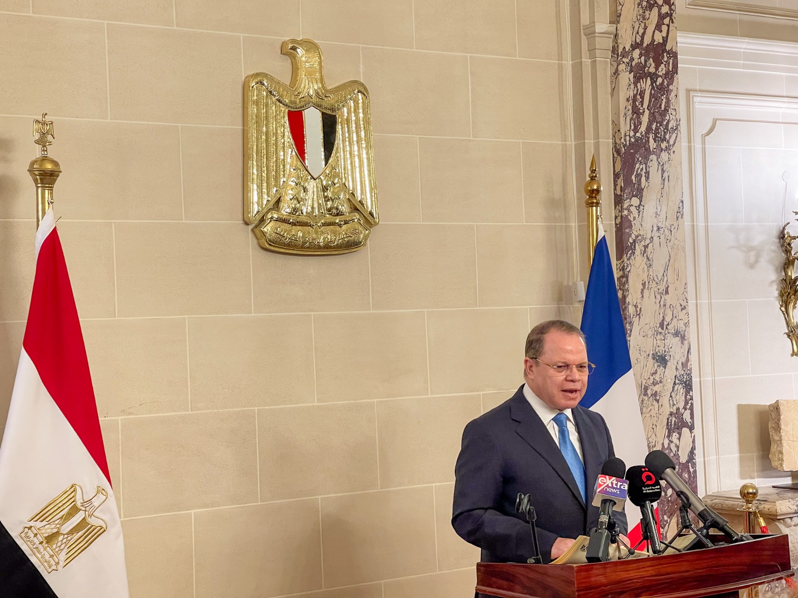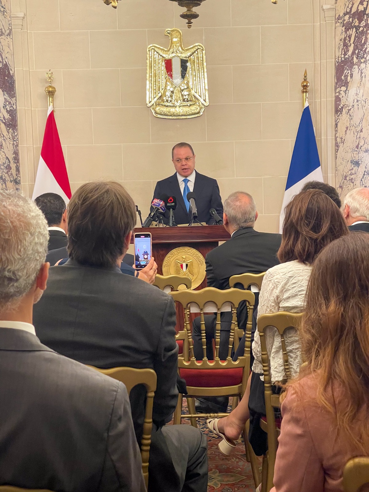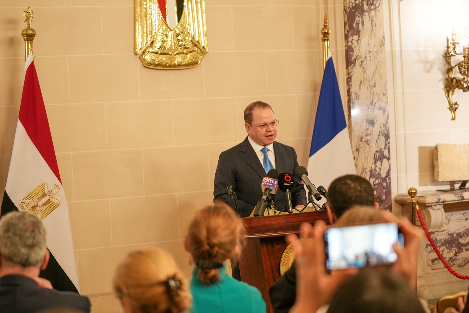 شهد النائب العام المستشار حمادة الصاوي ووفد رفيع المستوى اليوم الاثنين، حفل استرداد الدولة المصرية لجداريتين أثريتين في إحدى القضايا الدولية المهمة لنهب وتهريب الآثار، وذلك تلبية لدعوة السفير علاء يوسف سفير جمهورية مصر العربية لدى فرنسا؛ لحضور الحفل بمقر السفارة بباريس على هامش الزيارة الرسمية التي يجريها النائب العام ووفد من مكتبه.