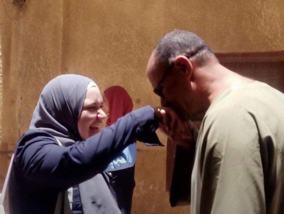 تعب الشهور تمحيه قبلة.. أب يقبل يد ابنته بعد امتحان الثانوية العامة: لازم تحس بالأمان ولو جابت 50% راضي عنها