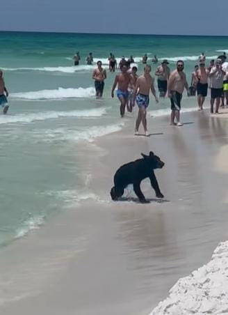 أذهل الدب الأسود، المصطافين في مدينة ديستين بانهاندل، خلال طقس حار، حيث أظهرت مقاطع الفيديو المنتشرة، اللحظة التي غطس فيها الدب في خليج المكسيك، قبل أن يصبح على شاطئ مزدحم.