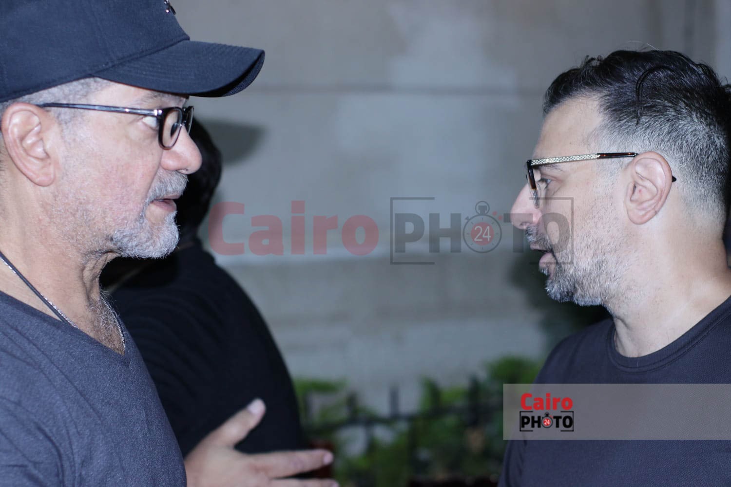 هاني سلامة وحسام حبيب والمخرج مروان حامد في عزاء الموسيقار أشرف أبو زيد | صور