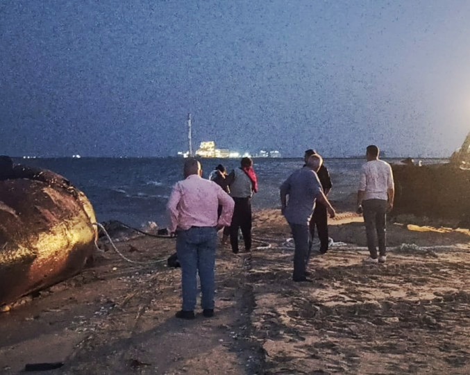 دفن الحوت النافق ببورسعيد
