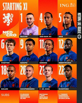 وجاء تشكيل منتخب هولندا ضد نظيره كرواتيا في مباراة اليوم كالتالي: