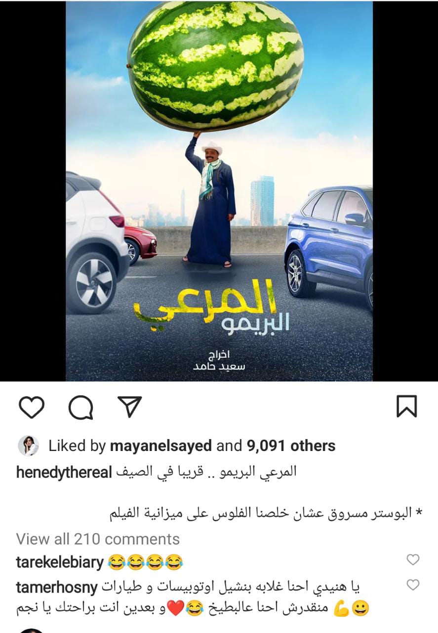 وكتب هنيدي عبر حسابه الشخصي بموقع تبادل الصور والفيديوهات إنستجرام: المرعي البريمو.. قريبًا في الصيف.. البوستر مسروق علشان خلصنا الفلوس على ميزانية الفيلم.