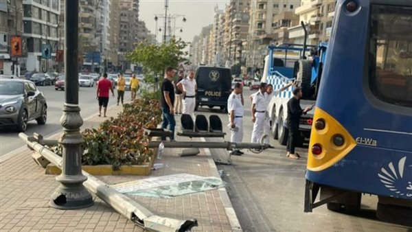 اصطدام أتوبيس شركة نقل جماعي بإشارة مرور في شارع عباس العقاد بمدينة نصر