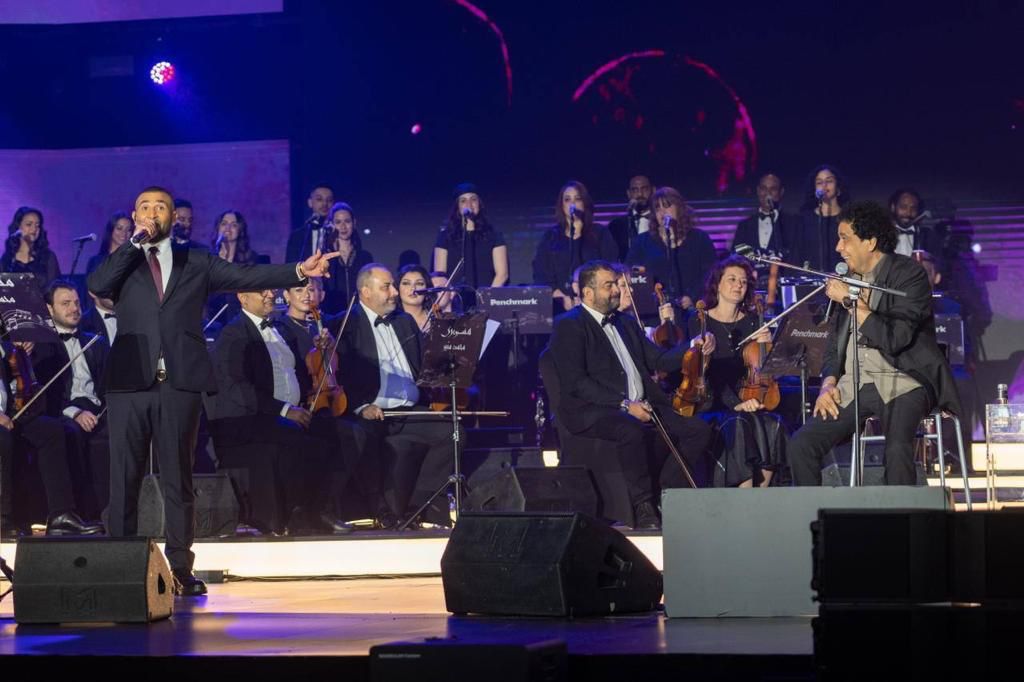 ودعا الفنان محمد منير في حفله للتفاؤل، قائلًا: ربنا بيرزقنا بيوم حلو ويوم مر، اليوم الحلو كله غنا وربنا ما يوقف من حياتنا الغنا، وهنا دعوة للغناء ودعوة للأمل والفرحة.