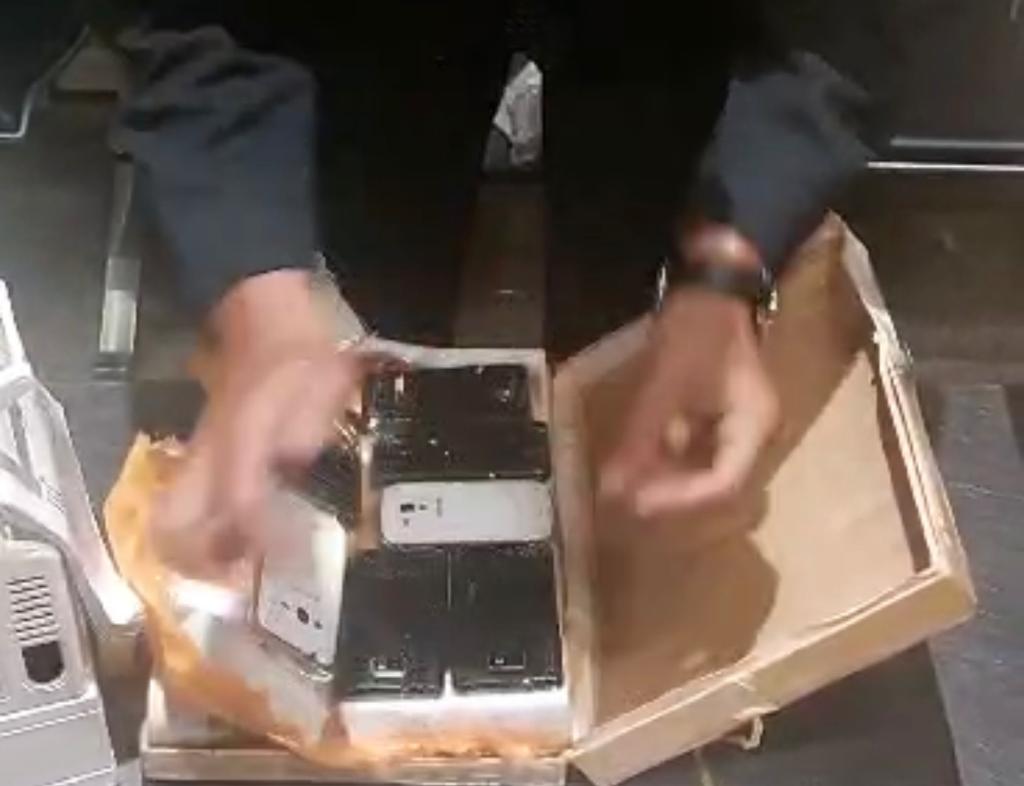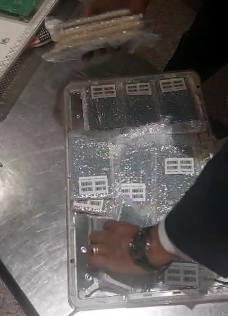 الحالة الأولى ضبطت خلال إنهاء الإجراءات الجمركية لركاب رحلة الخطوط المصرية القادمة من بروكسل استوقف هيثم رجب مأمور الجمرك المعين على لجنة الخط الأخضر أحد الركاب أثناء محاولته الخروج من بوابة اللجنة الجمركية، والذي أنكر حوزته لما يجب الإفصاح عنه أو ما يستحق عنه ضرائب ورسوم جمركية، وبتفتيش حقائبه على جهاز الفحص بالأشعة بواسطة كل من أحمد البحيري مأمور الجمرك وطاهر خفاجي مدير الإدارة واللذان تلاحظ لهما وجود كثافات معتمة داخل حقائب الراكب، قام إبراهيم عامر مدير الحركة المشرف على صالة الوصول بمبني الركاب رقم 3 بتكليف عبد القادر إبراهيم مأمور الجمرك بتفتيش حقائب الراكب يدويا مما أسفر ضبط كمية من التليفونات المحمولة مخبأة باحكام بطرق متنوعة داخل شاشة كمبيوتر ولاب توب واسفل اطقم قهوة، تم تكليف لجنة مكونة من عبد الله حمدي وعبد القادر السيد وأحمد إبراهيم الجمل ومحمد فتح الله مأموري الجمرك لجرد وعد وتصنيف وتحريز المضبوطات والتي بلغ عددها 101 تليفون محمول ماركات مختلفة في حضور محمد السيد احمد من إدارة الأمن الجمركي.