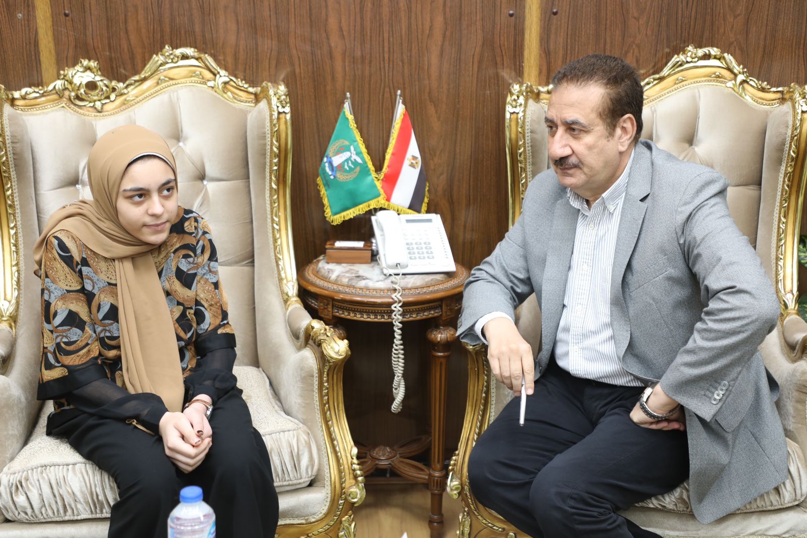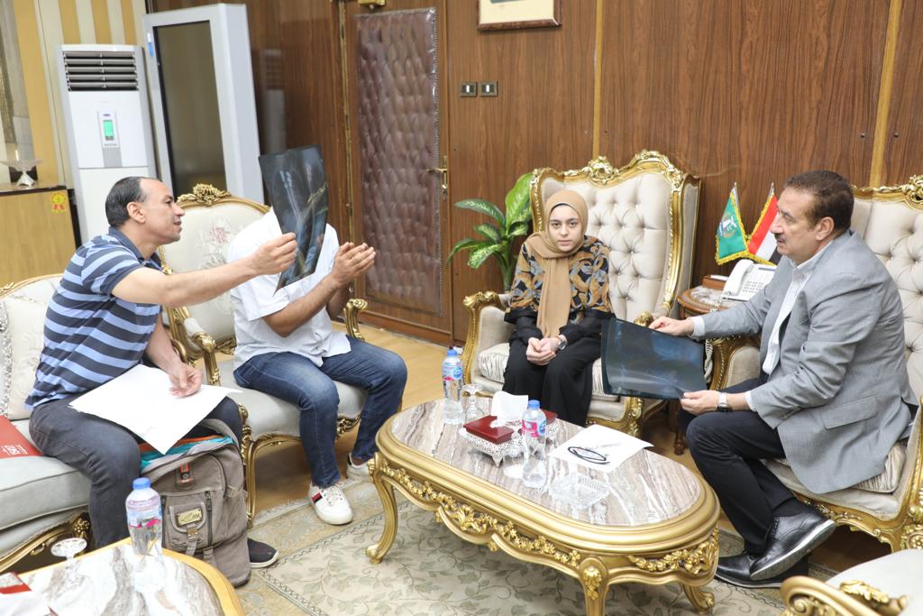 استجابة لـ القاهرة 24.. محافظ المنوفية يستقبل الطالبة حنين ويهديها مكافأة وهدية تذكارية