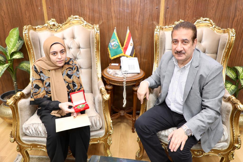 محافظ المنوفية يكرم الطالبة حنين الأولى على الشهادة الإعدادية