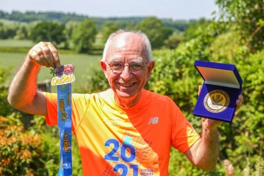 رغم منعه من الجري بالثلاثينات.. مسن بريطاني يشارك في 100 ماراثون بعمر 65