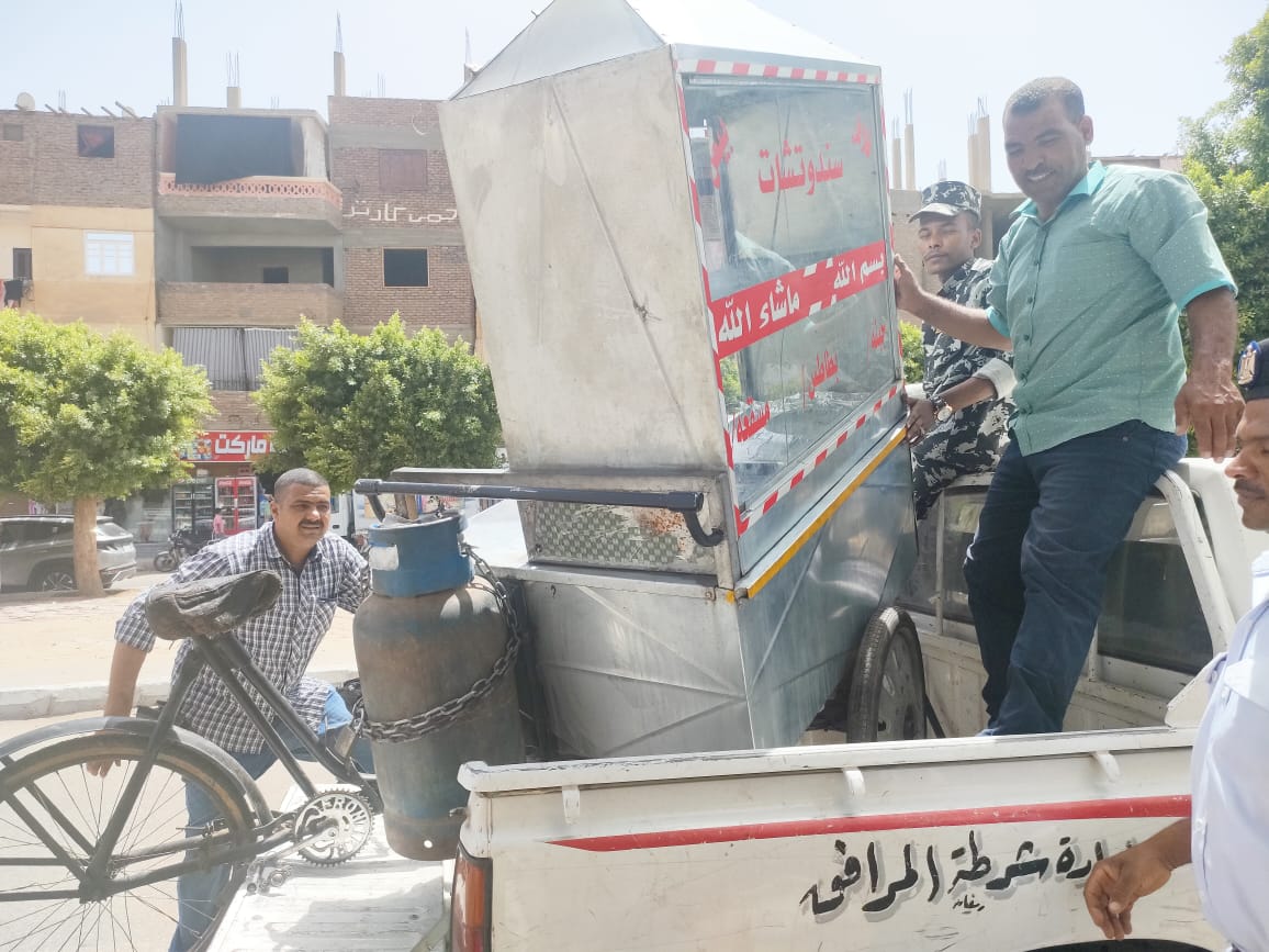 شنت شرطة مرافق الأقصر بقيادة العقيد خالد الغول مدير الإدارة بالتنسيق مع مجلس مدينة الأقصر، حملة مكبرة استهدفت مناطق سوق الصنايع، أبو الجود، معدية الأهالي، موقف أرمنت، نجع الطويل، الكرنك.