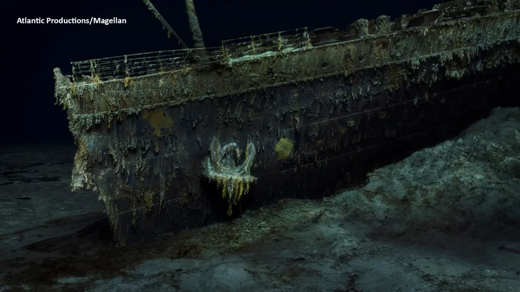واكتشف الباحثون حطام سفينة تيتانيك في المحيط الأطلسي عام 1985 على بعد نحو 370 ميلًا من الساحل الكندي، ووجدت السفينة مقسومة إلى جزأين بعد انقسامها إلى نصفين أثناء غرقها.