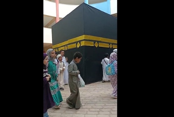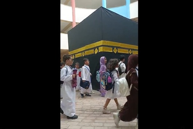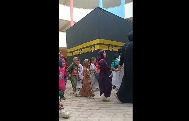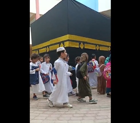 جاء ذلك خلال فيديو نشرته المدرسة عبر صفحتها الرسمية على موقع التواصل الاجتماعي فيسبوك، حيث ظهر فيه تزين الأطفال بمظهرهم الرائع من خلال ارتداء الجلاليب البيضاء للأولاد والعباءات والطرح للبنات، وشرح المعلم أركان الإسلام بصيغة مبسطة للأطفال كأنهم سافروا إلى مكة المكرمة.