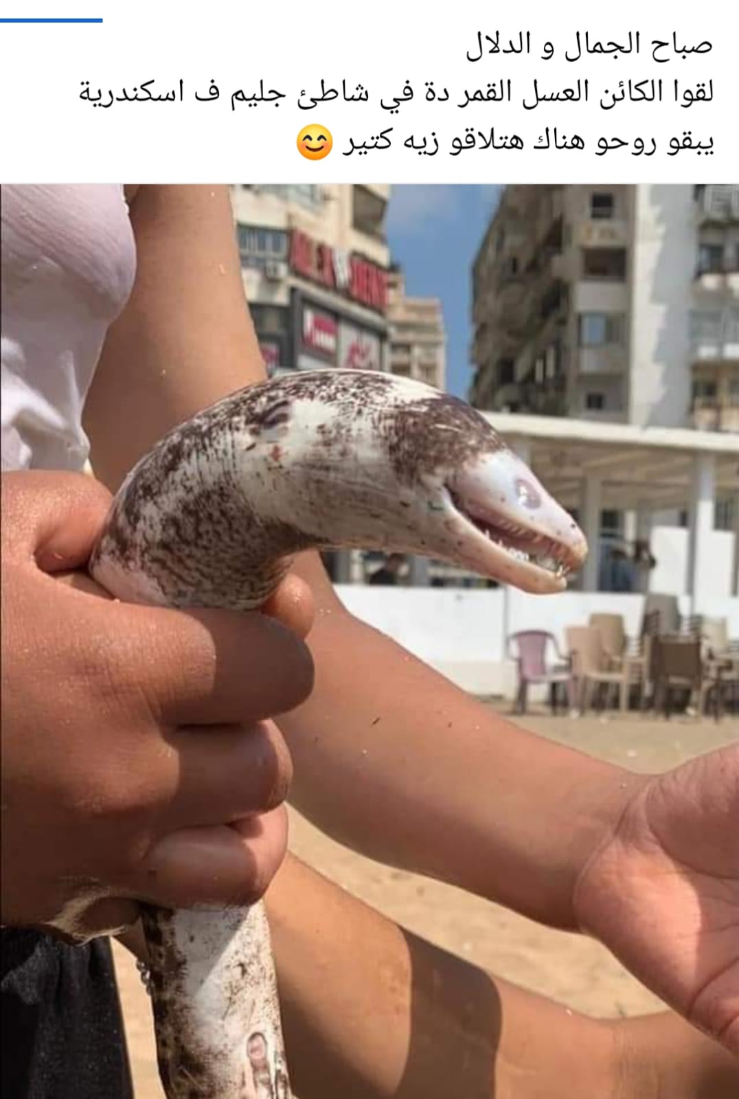 في حين كتب آخر: لقوا الكائن ده في شاطئ جليم في اسكدية ابقوا روحوا هناك هتلاقوا زيه كتير.