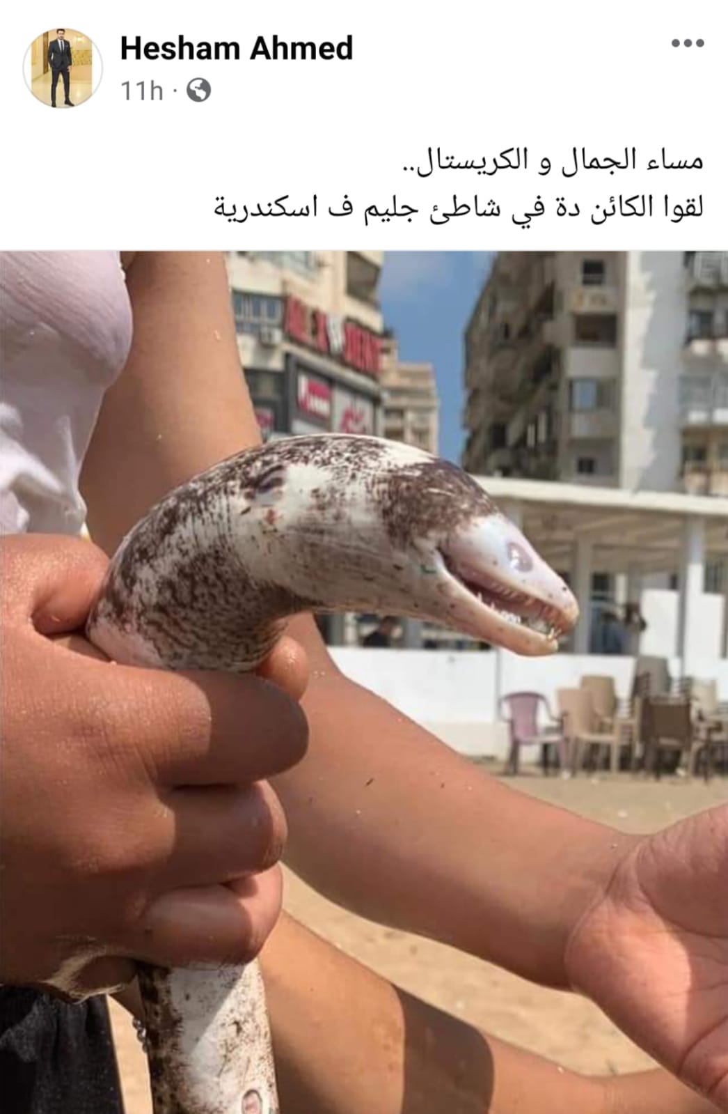 وقال ثالث: مساء الجمال والكريستال.. لقوا الكائن ده في شاطئ جليم في اسكندرية.