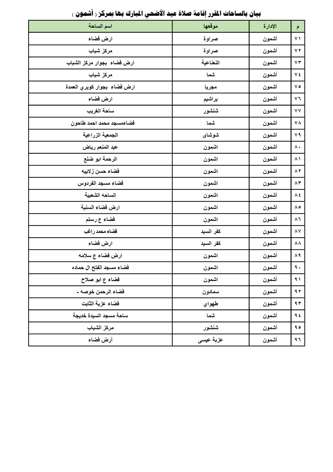 ننشر أماكن صلاة عيد الأضحى المبارك في المنوفية| مستندات