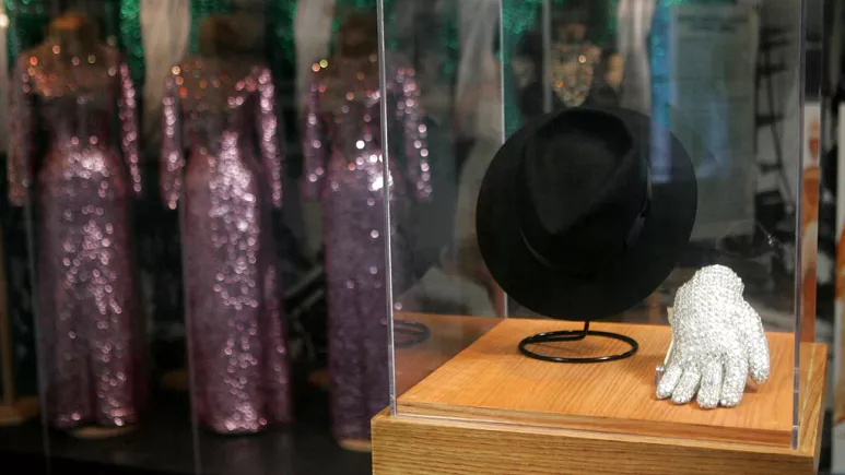 وبجانب قبعة مايكل جاكسون، يشمل المزاد نحو 200 قطعة، من صور وملصقات وتذاكر حفلات وأسطوانات ذهبية لمادونا وجيتارات قديمة، وأزياء لمارتن غر من فرقة ديبيش مود، وأسطوانات فنييل لفرقة رولينج ستونز.