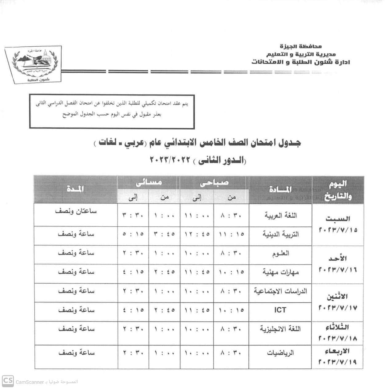 اعتمد اللواء أحمد راشد محافظ الجيزة وأشرف سلومة وكيل وزارة التربية والتعليم بالجيزة مواعيد امتحانات وجداول الدور الثاني للعام الدراسي 2022/2023، حيث جاءت الجداول على النحو التالي: