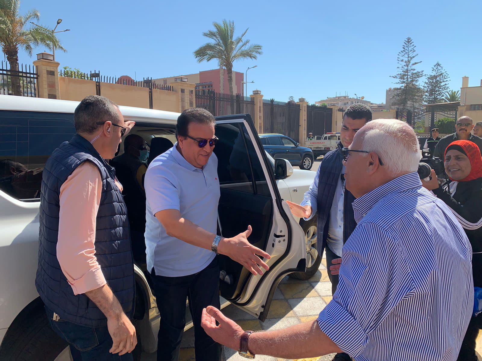 وصول وزير الصحة لافتتاح مجمع الشفاء ببورسعيد