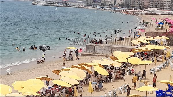 ارتفاع درجات الحرارة وتواصل الإقبال على شواطئ الإسكندرية