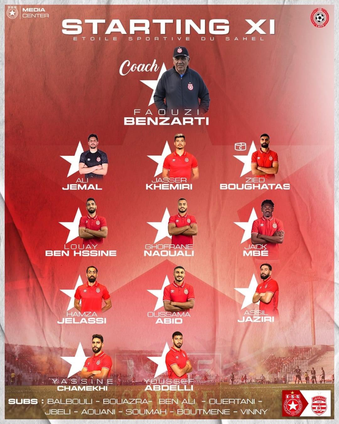 دخل فريق النجم الساحلي بتشكيل مكون من: علي الجمل، حمزة الجلاصي، زياد بوغطاس، غفران النوالي، جاسر الخميري، جاك مبي، لؤي بن حسين، أسامة عبيد، ياسين الشماخي، أصيل الجزيري ويوسف العبدلي.