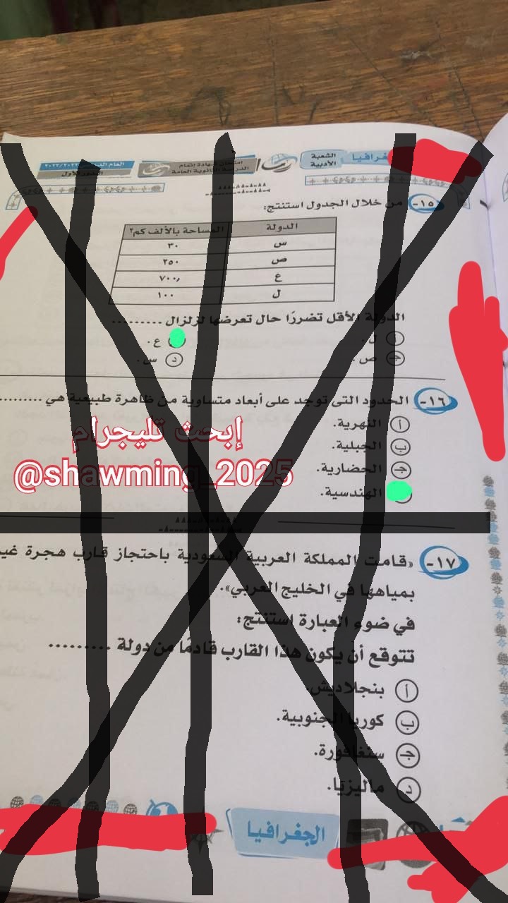 وعلق أدمن شاومينج على الصور: امتحان الجغرافيا يا شباب، والمدرسين شغالين على الحل، دقايق ونرفع الحل كامل.. استنونا.
