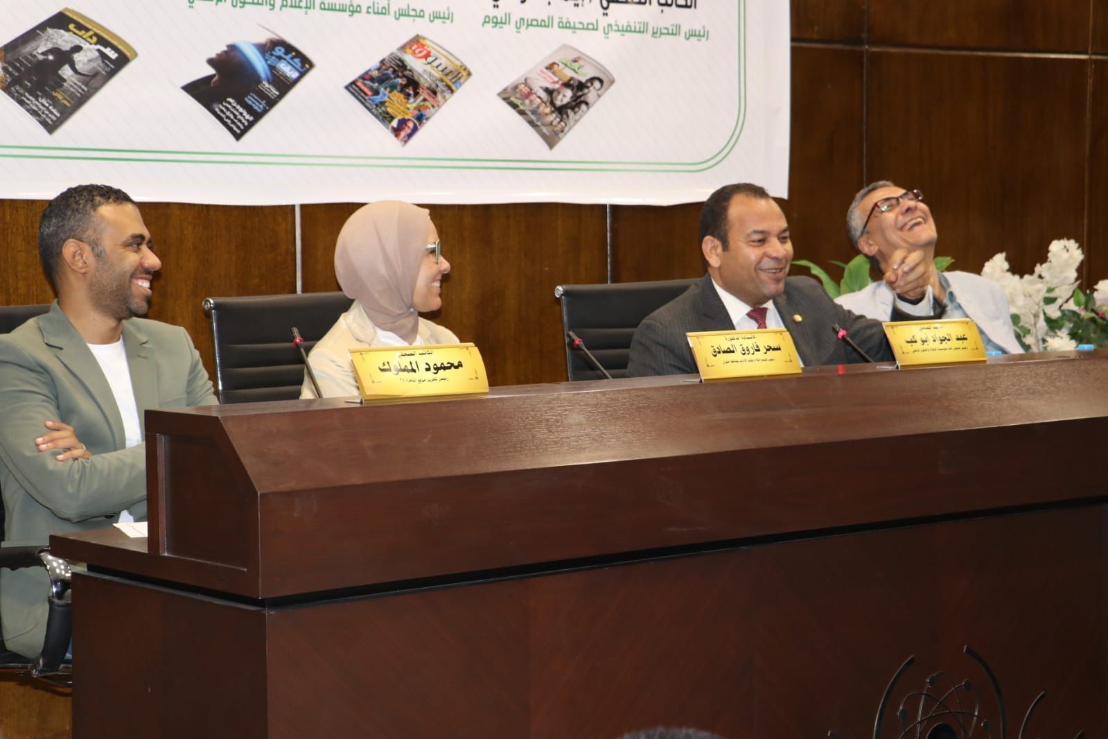 استضاف قسم الإعلام بكلية الآداب جامعة حلوان الكاتب الصحفي محمود المملوك رئيس تحرير القاهرة 24، وإيهاب الزلاقي وعبد الجواد أبو كب، لتقييم مشاريع تخرج شعبة الصحافة 2023.