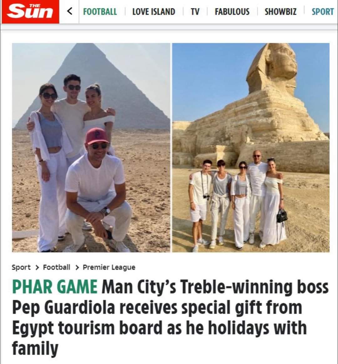 ذا صن تسلط الضوء على زيارة بيب جوارديولا وأسرته لمصر