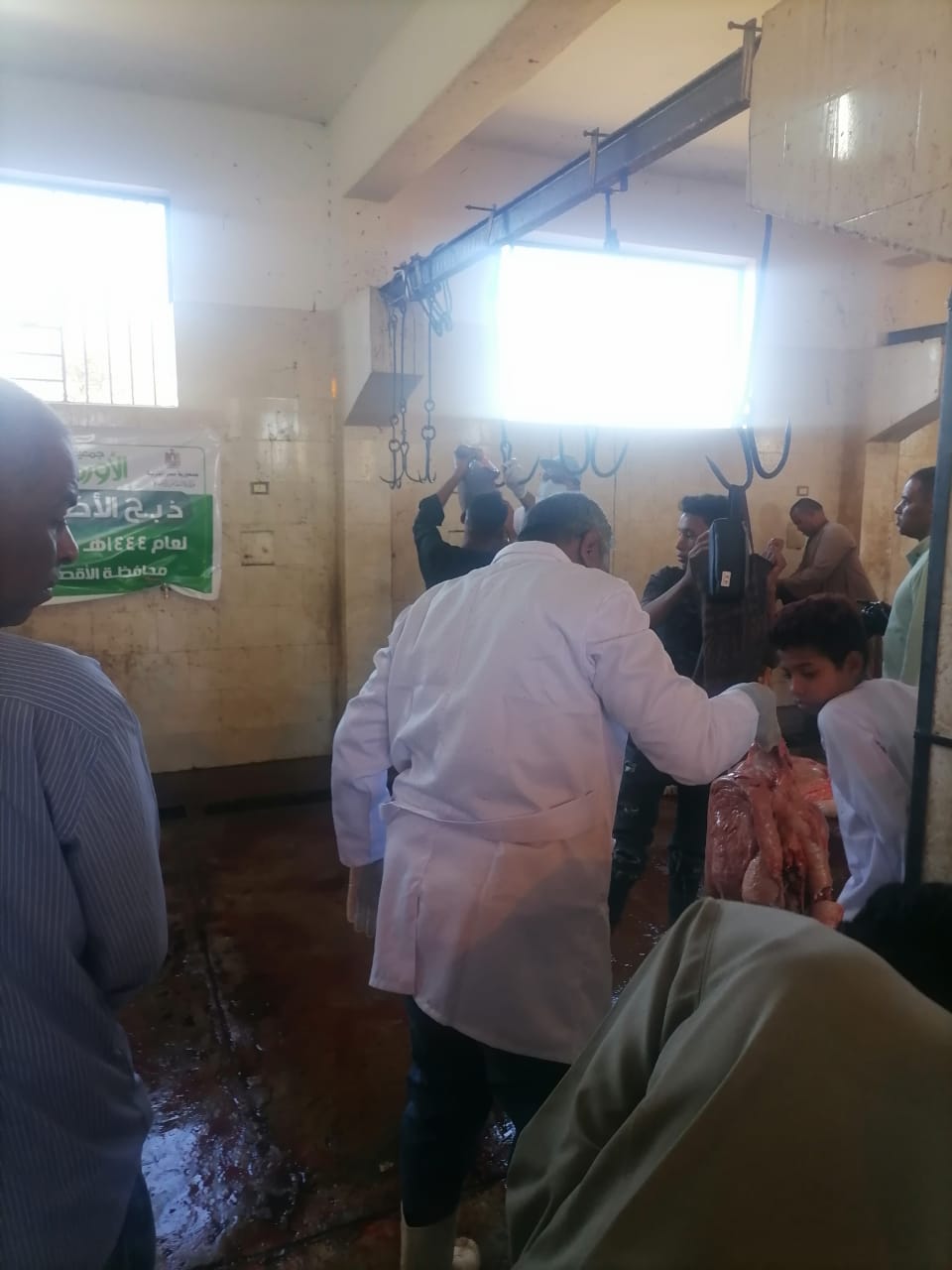 وعلى صعيد آخر، تابع الدكتور فتحي سلمي مدير عام الطب البيطري بالأقصر، أعمال ذبح الأضاحي داخل مجزر الأقصر بالحبيل، بحضور المهندس محمود شاهين رئيس مجلس مدينة البياضية، والعميد إبراهيم كمال مدير فرع مؤسسة الاورمان بالأقصر، والشيخ عمر أبو خليل، مدير عام الوعظ والإرشاد الأزهري وأحمد أبو عيش، سكرتير مجلس مدينة الأقصر.