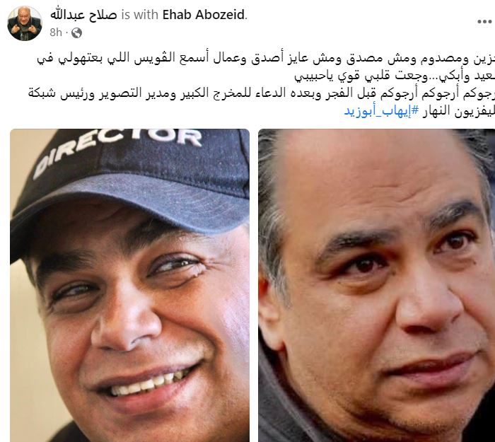 كما كتب صلاح عبد الله، منشورا، عبر حسابه الشخصي، جاء فيه: حزين ومصدوم ومش مصدق ومش عايز أصدق وعمال أسمع الرسالة اللي بعتهالي في العيد وأبكي.