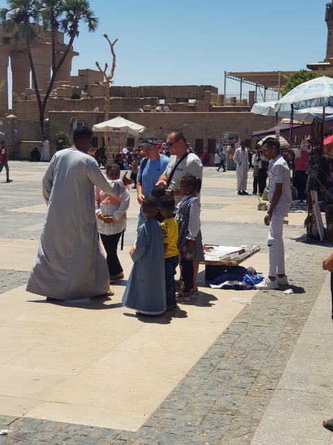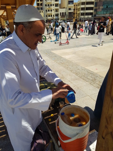 ووزّع أحد مواطني الأقصر عصائر ومياه على المتواجدين بالساحة فرحا بالعيد، وتخفيفا عليهم من حرارة الجو التي قاربت الـ 40 درجة مئوية.