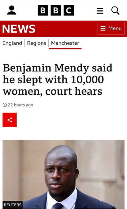 كشفت شبكة بي بي سي البريطانية، عن مفاجأة صادمة بشأن تفاصيل محاكمة بنجامين ميندي نجم فريق مانشستر سيتي الإنجليزي، في قضايا الاغتصاب الموجهة إليه منذ فترة.
