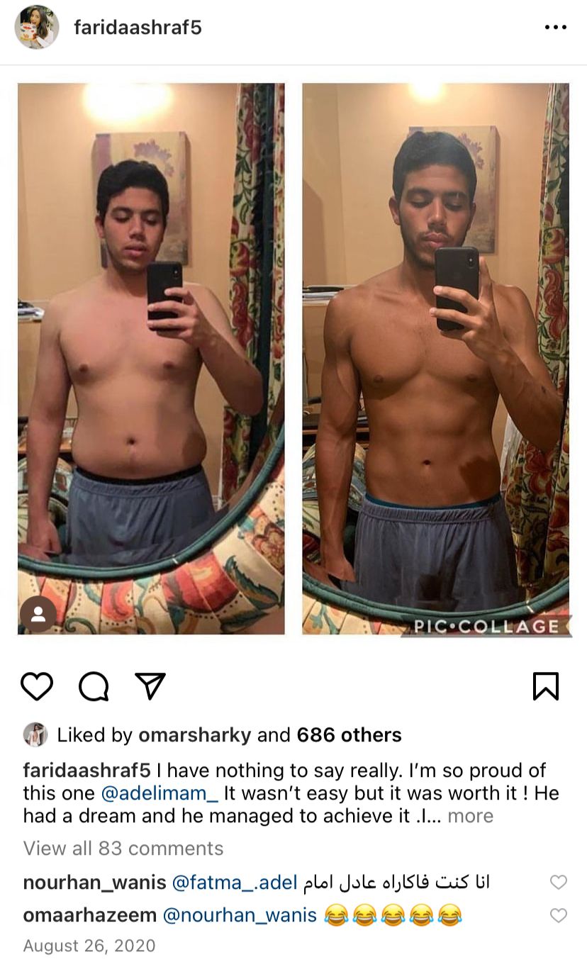 وتابعت فريدة: لقد كنت مصممًا جدًا وأردت حقًا تحسين نمط حياتك، أنا فخورة بك، أنت مدهش وتذكر دائمًا أن تفعل ما يجعلك سعيدًا والأهم من ذلك ما هو مفيد لك.