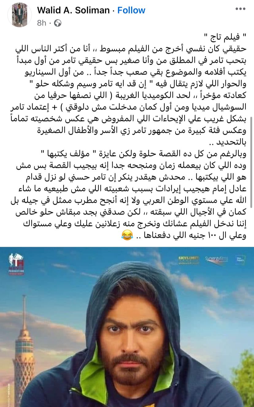 جدل حول فيلم تاج لـ تامر حسني بين مؤيد ومعارض فور عرضه في دور السينما