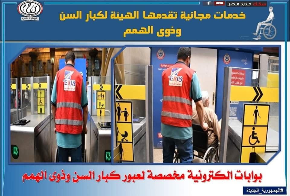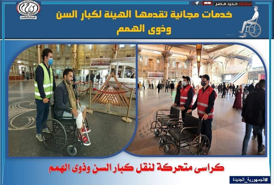 قالت الهيئة القومية لسكك حديد مصر، إنها تعمل على توفير خدمات بشكل مجاني لمستخدمي قطارات السكك الحديدية من فئة كبار السن وذوي الهمم، وذلك في محطات القطارات الرئيسية، منها محطة مصر برمسيس والجيزة وسيدي جابر ومحطة مصر بمحافظة الإسكندرية.