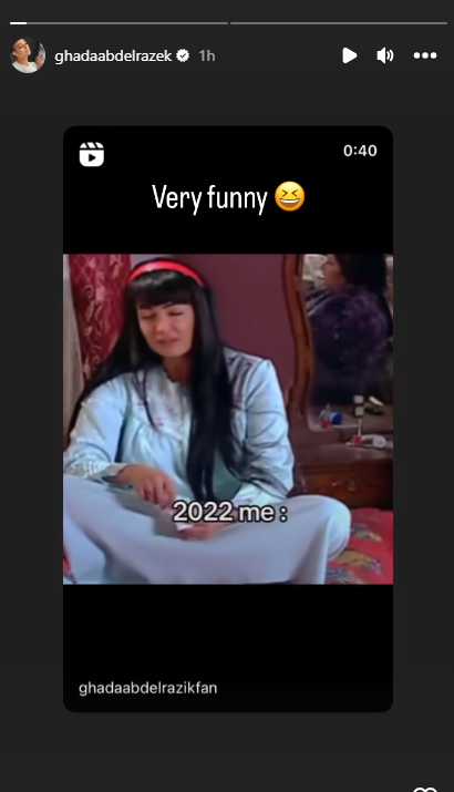 كما نشرت غادة عبد الرازق لجمهورها مقطع فيديو من أحد أعمالها التلفزيونية يظهر سنة 2022 تبكي، وتظهر في مشهد آخر سنة 2023 تقوم بضرب إحدى الفتيات وسط الحارة، معلقة: مضحك جدا.