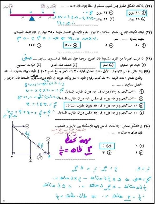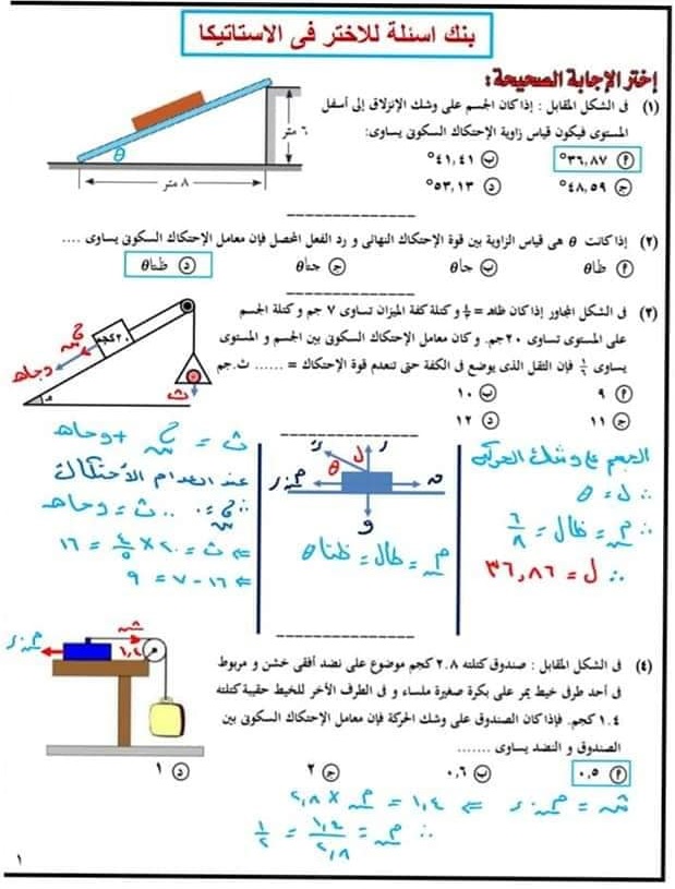 - مجموع مادة الاستاتيكا: 30 درجة و20 سؤالًا.