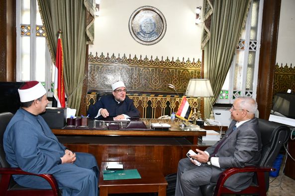 وزير الأوقاف يستقبل رئيس الجامعة المصرية للثقافة الإسلامية بكازاخستان