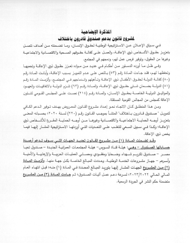 قبل المناقشة البرلمانية.. تفاصيل مشروع قانون دعم صندوق قادرون باختلاف | مستند