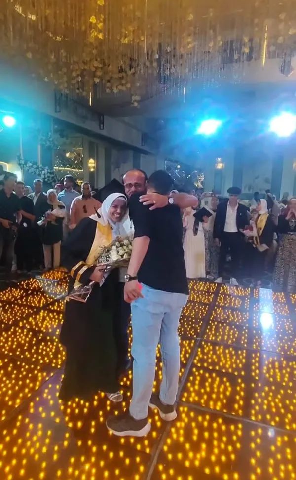 وتابعت نادية محمد: امبارح والدي كلمه وعزمه على حفل التخرج، وقاله انت مش كنت عايز تحضر الحفلة، أنا موافق إنك تيجي معانا، وتفاجأت أنا ووالدي بموقفه هذا، وبانتشار الفيديو عبر منصات التواصل الاجتماعي، لدرجة إن الناس وقفتي في الشارع بعد الحفلة وقالولي شوفي الفيديو بتاعك وكلهم كانوا بيدعوا لي ويباركوا لي.